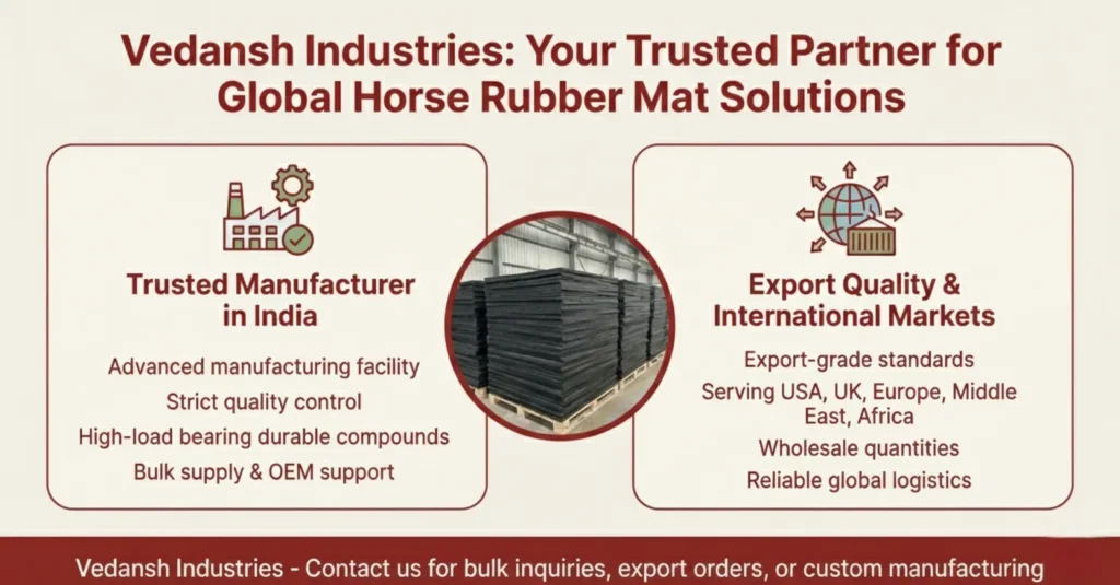 Vedansh Industries proudly represents Made in India horse rubber mats trusted by international buyers.